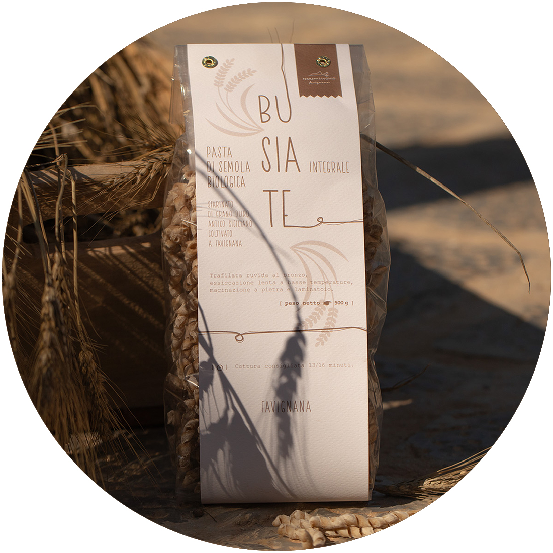 Varietà Tumminia, coltivato a Favignana, macinato a pietra e laminatoio.